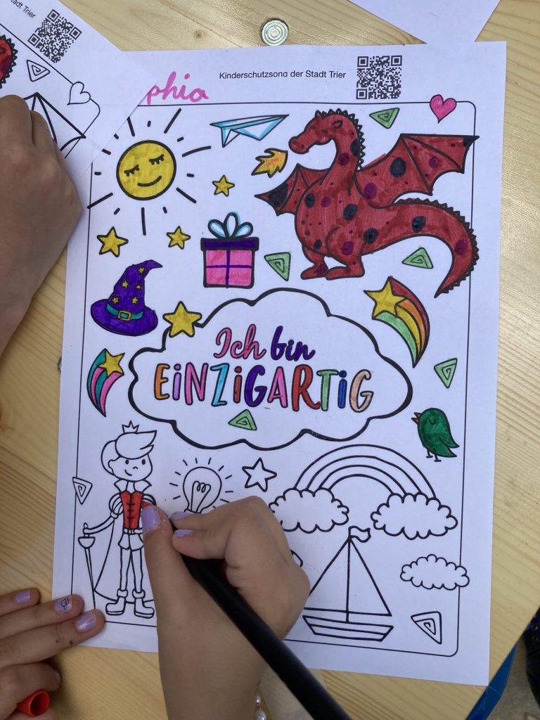 Anlässlich des Weltkindertags waren wir mit unseren Künstlerinnen Claudia Pomowski und Marie von Klitzing sowie einer Ehrenamtlichen von 15 bis 18 Uhr auf dem Spielplatz Am Beutelweg in Trier-Nord.