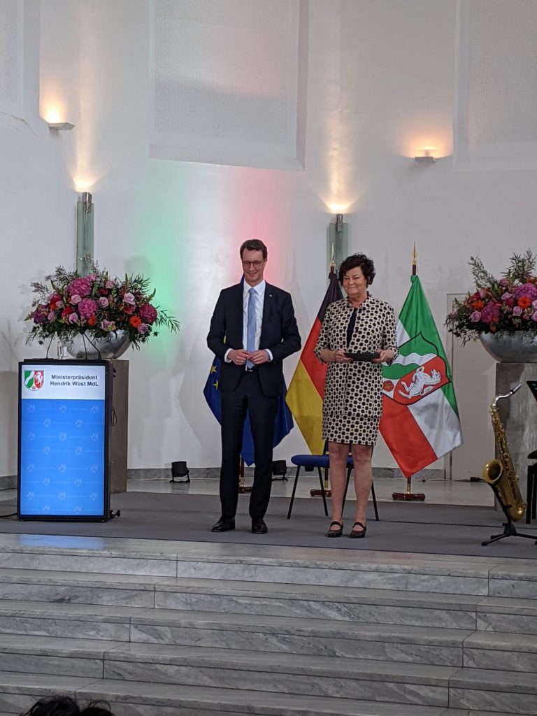 Ministerpräsident Hendrik Wüst hat Claudia Seidensticker für ihr außerordentliches Engagement für Kinder und Jugendliche mit dem Verdienstorden des des Landes Nordrhein-Westfalen ausgezeichnet.