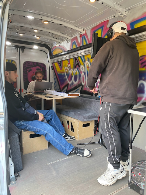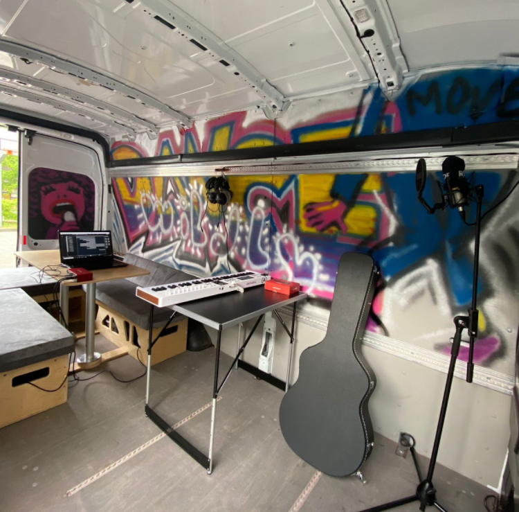 Der MOVER ist das rollende Tonstudio von KRASS e.V. und mehrmals in der Woche auf Tour in Düsseldorf. Dann findet man ihn in Parks, an Schulen und anderen Orten wo Jugendliche ab ca.13 Jahren und älter sich wohl fühlen. Außerdem haben wir ein echtes Tonstudio bei KRASS e.V.
