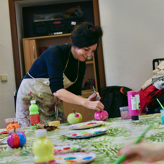 Daniela Kurella betreute mit viel Engagement und Leidenschaft das Projekt „Malort“ in der AfA Trier und unterstützt uns nun als Kunstdozentin bei den Kunst-Kindergeburtstagen. Sie malt und bastelt mit den Kindern.